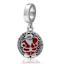 925 Sterling Silver Present with Red Bow Heart Charm Bead with Zircon Stone