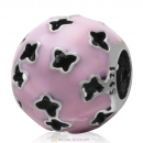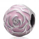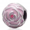 925 Sterling Silver Pink Rose Garden with Lt Siam Crystal Charm Bead