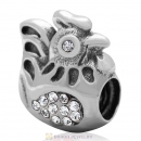 925 Sterling Silver Animal Rooster with Clear Australian Crystals Bead