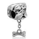 925 Sterling Silver Shar-Pei Dangle Bone Charms with Clear Australian Crystal