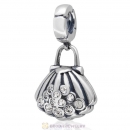 925 Sterling Silver Pearl Shell Clear Crystal Dangling Charms