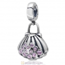 925 Sterling Silver Pearl Shell Violet Crystal Dangling Charms