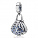 925 Sterling Silver Pearl Shell Lt Sapphire Crystal Dangling Charms