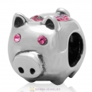925 Sterling Silver Cute Pig with Lt Siam Love Crystal Charm Bead