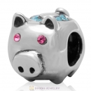 925 Sterling Silver Cute Pig with Sapphire Love Crystal Charm Bead