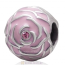 925 Sterling Silver Pink Rose Garden with Lt Rose Crystal Charm Bead