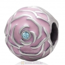 925 Sterling Silver Pink Rose Garden with Aquamarine Crystal Charm Bead
