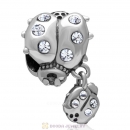 925 Sterling Silver Ladybug with Dangling Smaller Ladybug and Clear Crystals Charm Bead