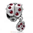 925 Sterling Silver Ladybug with Dangling Smaller Ladybug and Siam Crystals Charm Bead