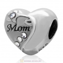925 Sterling Silver Mom Heart Love Bead with Clear Crystal