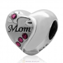 925 Sterling Silver Mom Heart Love Bead with Lt Siam Crystal