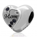 925 Sterling Silver Mom Heart Love Bead with Topaz Crystal