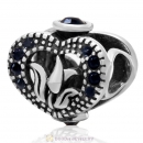 Love Tulip 925 Sterling Silver Heart Bead with Blue Zircon Crystal