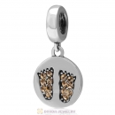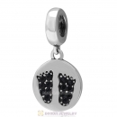 925 Sterling Silver Jet Crystal Pave Dangle Baby Feet Charm