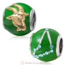 925 Sterling Silver Green Enamel Charm Zodiac Sign Gemini Bead