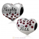 925 Sterling Silver Nice or Naughty Heart Bead with Lt Siam Crystal