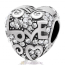 Heart with Love Charm Clear Austrian Crystal Bead 925 Sterling Silver