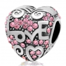Heart with Love Charm Rose Austrian Crystal Bead 925 Sterling Silver