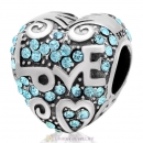 Heart with Love Charm Blue Zircon Austrian Crystal Bead 925 Sterling Silver
