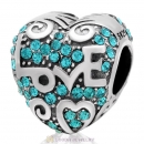 Heart with Love Charm Aquamarine Austrian Crystal Bead 925 Sterling Silver