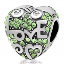 Heart with Love Charm Peridot Austrian Crystal Bead 925 Sterling Silver