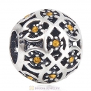 Sterling Silver Intricate Lattice Bead with Topaz Austrian Crystal