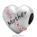 925 Sterling Silver Lt Rose Crystal Mother Heart Love Bead