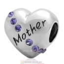 925 Sterling Silver Violet Crystal Mother Heart Love Bead