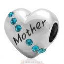 925 Sterling Silver Aquamarine Crystal Mother Heart Love Bead