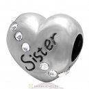 925 Sterling Silver Clear Crystal Sister Heart Love Bead