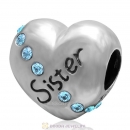 925 Sterling Silver Sapphire Crystal Sister Heart Love Bead