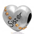 925 Sterling Silver Topaz Crystal Sister Heart Love Bead