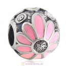 925 Sterling Silver Pink Daisy Flower Charm Bead with Clear Crystal