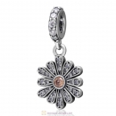 925 Sterling Silver Daisy Flower Charm with Clear and Champagne Stone
