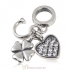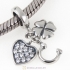 925 Sterling Silver Radiant Heart Dangle Charm with Clear and Pink Stone