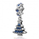 925 Sterling Silver Merry Christmas Tree Dangle Charm with Sapphire Crystal