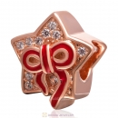 925 Sterling Silver Red Bow Rose Gold Star Charm Bead with Clear Stone
