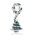 925 Sterling Silver Merry Christmas Tree Dangle Charm with Sapphire Crystal