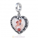 925 Sterling Silver Dangle Love Heart Personalized Photo Charm Bead