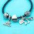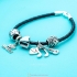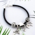 Sterling Silver Black Braided Leather Animal Paw Print Bracelet Charms