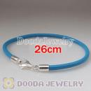 26cm Single Slippy Blue Leather Bracelet with Sterling Lobster Clasp