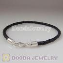 38cm Black Braided Double Leather Bracelet with Sterling Lobster Clasp