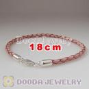 18cm Pink Braided Leather Bracelet with Sterling Lobster Clasp