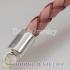 38cm Pink Braided Double Leather Bracelet with Sterling Lobster Clasp