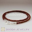 38cm Brown Braided Double Leather Bracelet with Sterling Lobster Clasp