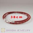 40cm Red Braided Double Leather Bracelet with Sterling Lobster Clasp