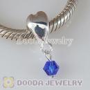 925 Sterling Silver Heart Charms Dangle Dark Blue Stone