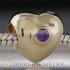 European Style Silver Heart Beads Gold Plated Circle with Purple Stone