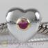 European Style Silver Heart Beads Gold Plated Circle with Pink Stone