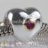 Gold Plated Sterling Silver Heart Beads with Red Stone